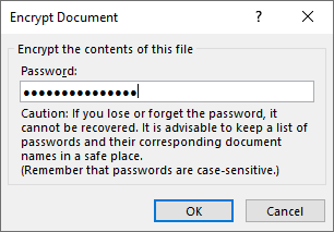 - Encrypt with Password: Encrypts and password protects the whole document.