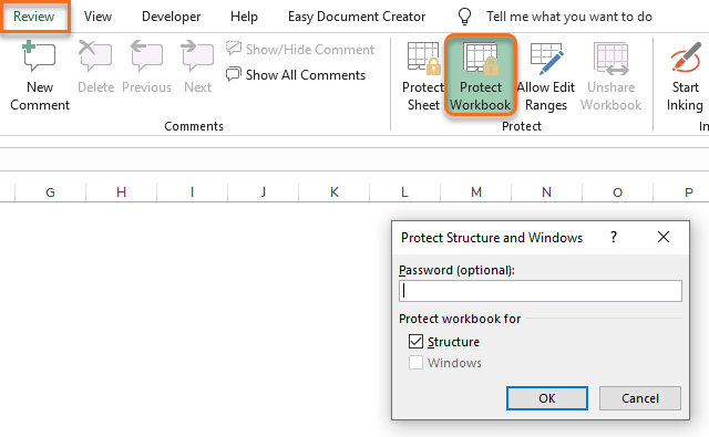 - Protect Workbook: Prevents users from adding or deleting sheets in the workbook structure.