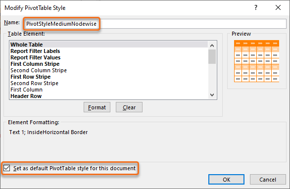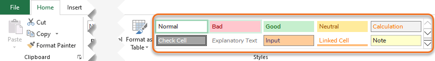 - Table Styles, Pivot Tables Styles and Slicers Styles: Custom Styles can be saved and set as default.