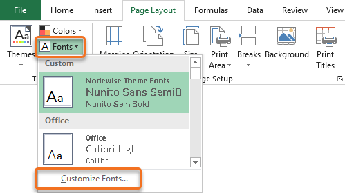 Changing fonts globally from Page Layout is a quick way to style the whole workbook.