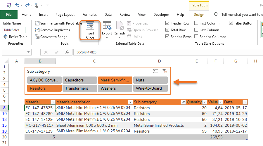 Table Slicers