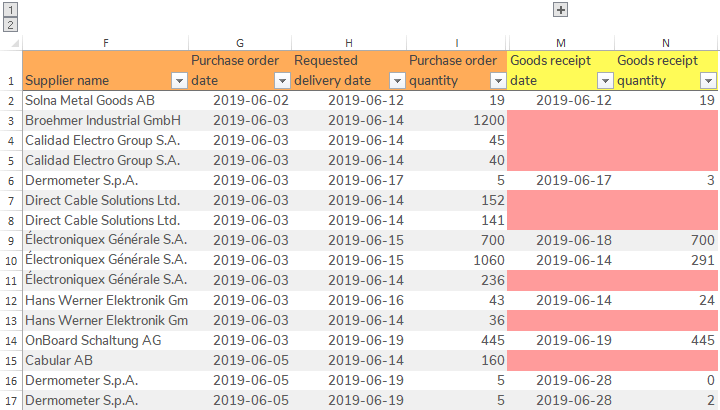 - Purchase orders (data source: ERP).