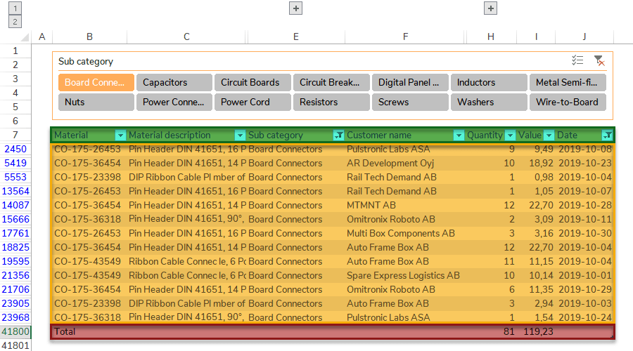 | TableMaterialData | Returns the data area of the Table (excluding Totals) named TableMaterialData. |